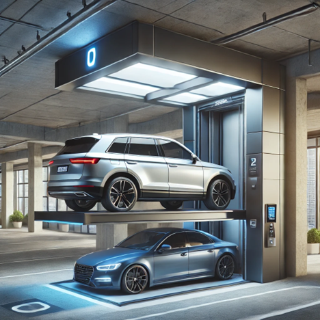 - Elevadores de plataforma deslizante: Permiten estacionar un auto sobre otro sin afectar el área de circulación.